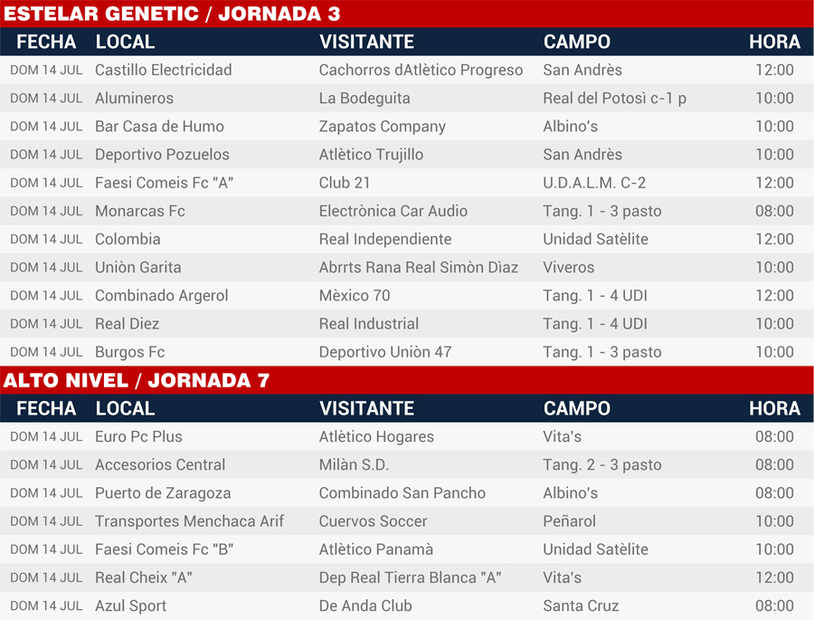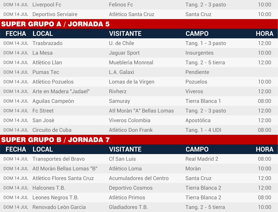 | Rol de juegos 13 y 14 de julio, Liga Central |
