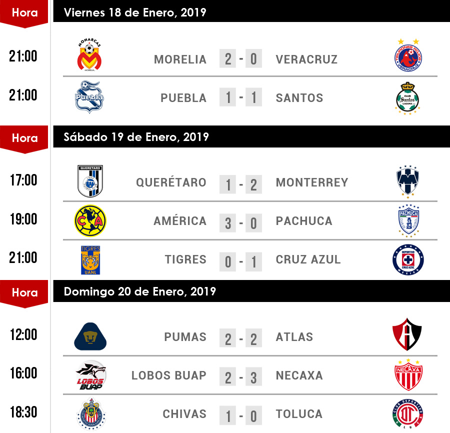 | Resultados Jornada 3, Liga Mx |