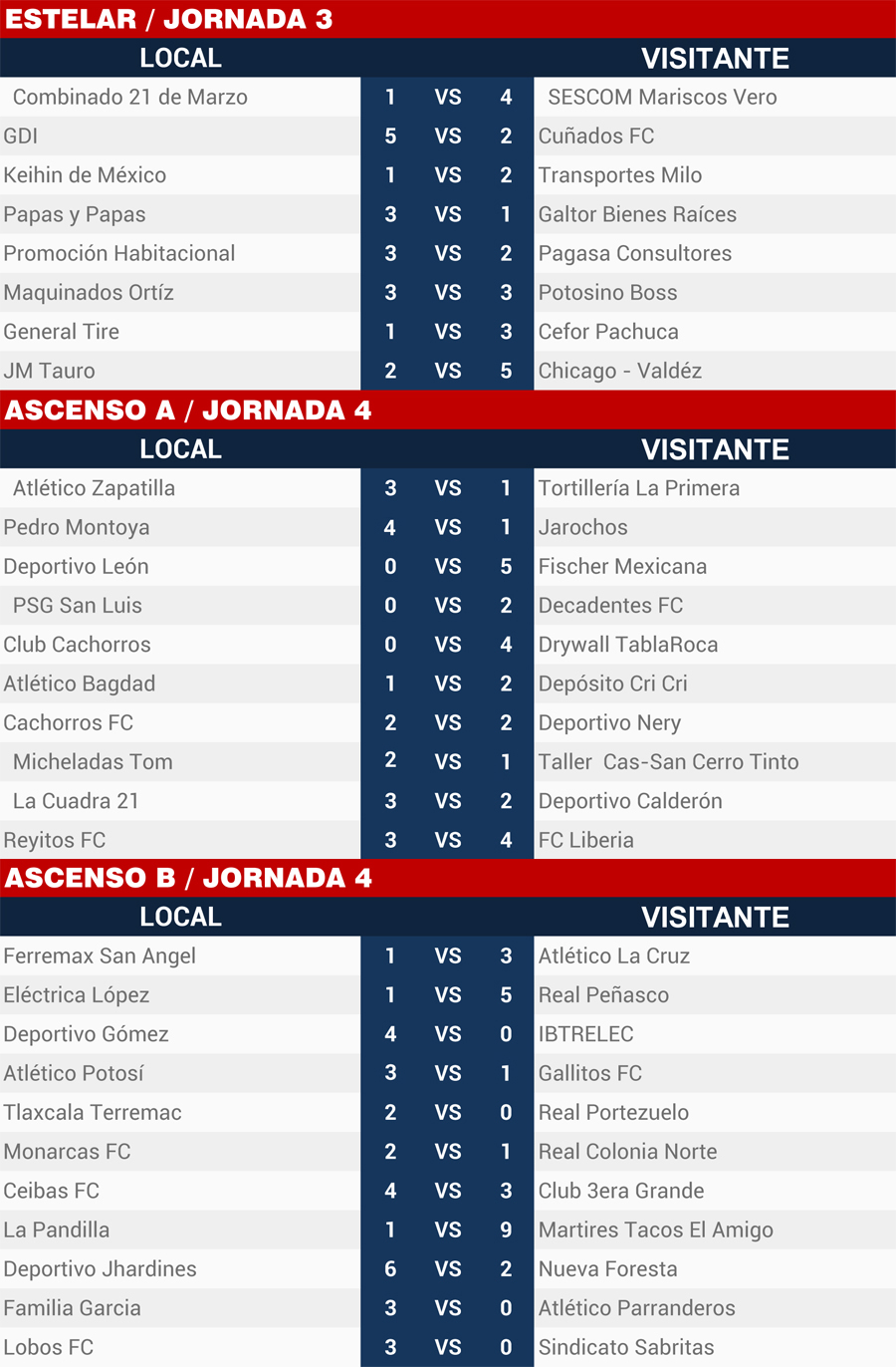 | Resultados 19 y 20 de Enero, Liga Potosina |