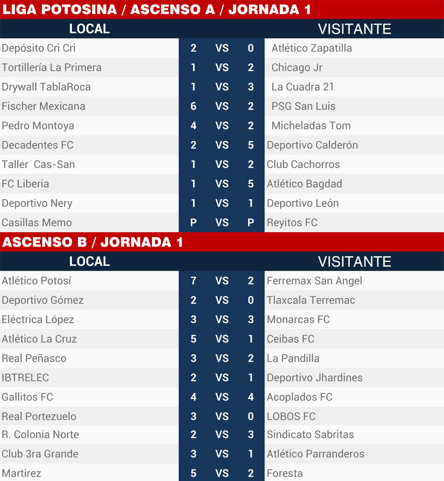 | Resultados 19 y 20 de Enero, Liga Potosina |
