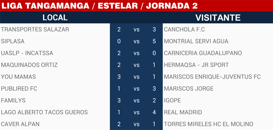 | Resultados, 2 de Diciembre Liga Tangamanga |