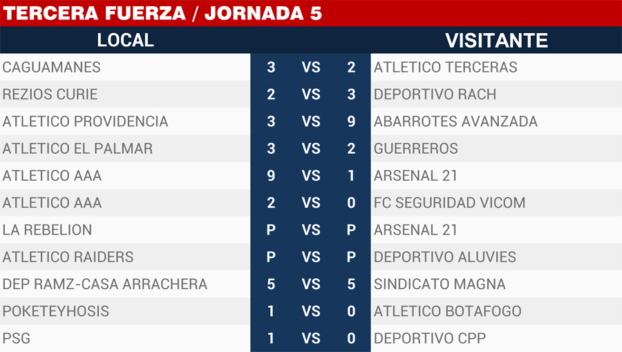 | Resultados Jornada 3, Super Liga Zona Industrial |