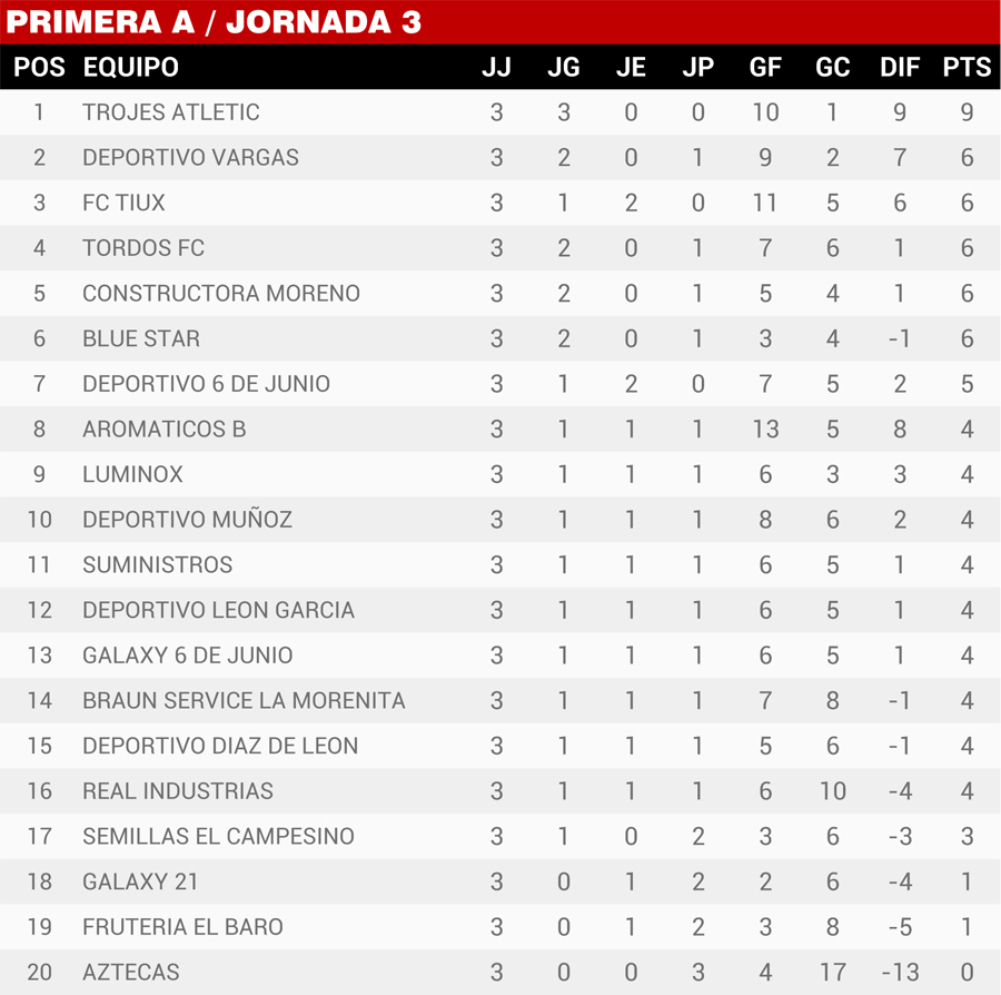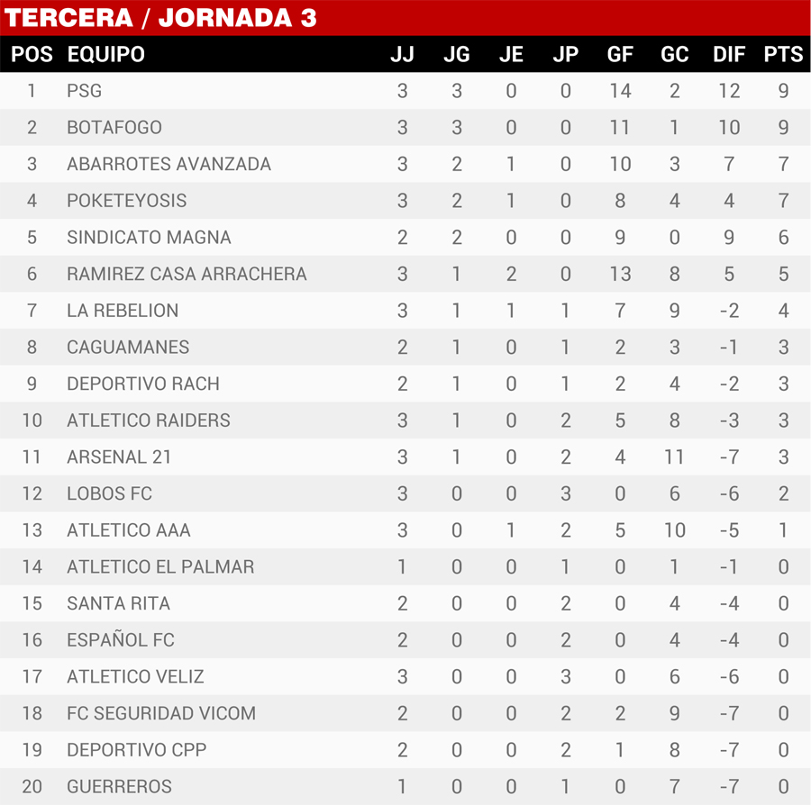 | Resultados Jornada 3, Super Liga Zona Industrial |