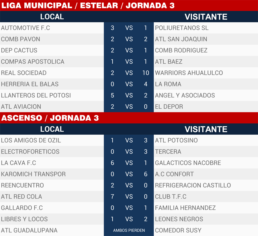 | Resultados Jornada 3, Liga Municipal |