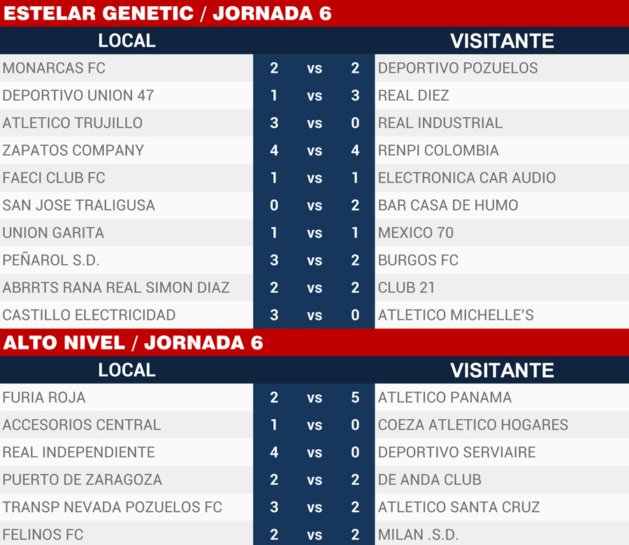 | Resultados 9 y 10 de Febrero, Liga Central |