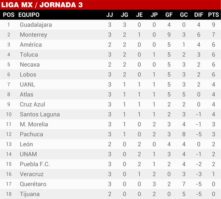 | Resultados Jornada 3, Liga Mx |