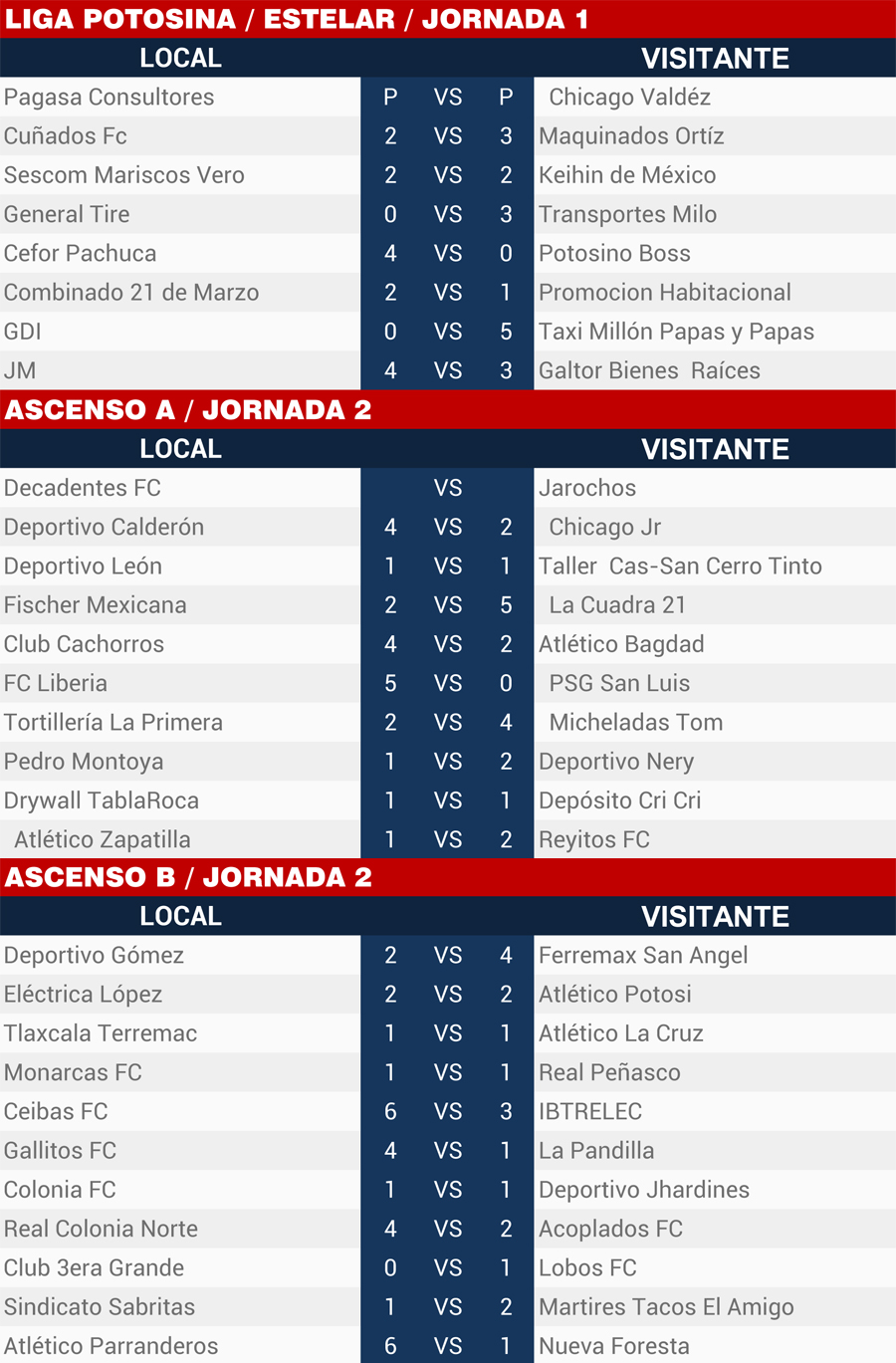 | Resultados 2 y 3 de Febrero, Liga Potosina |