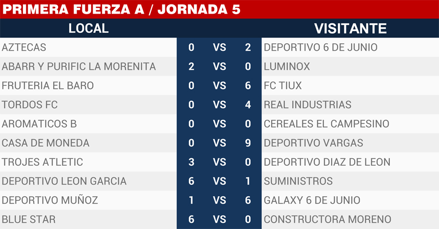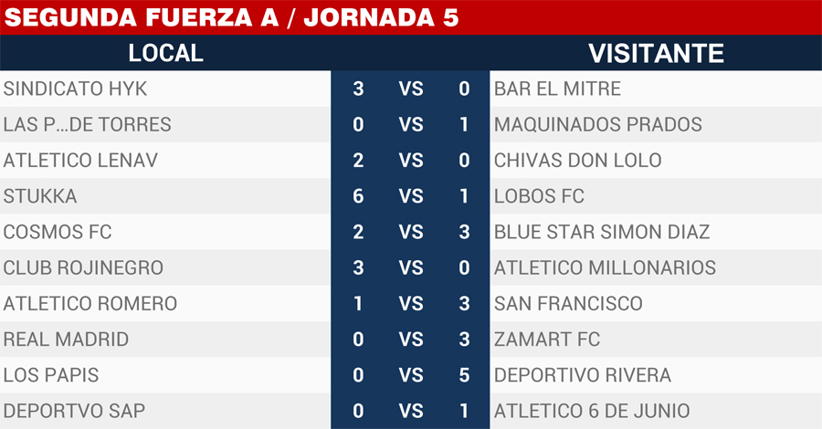 | Resultados, 16 de Diciembre Liga Zona Industrial |