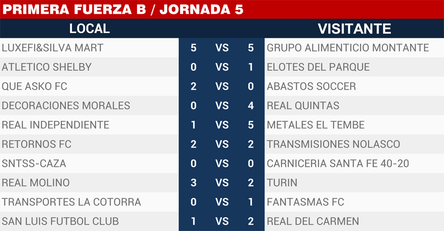| Resultados Jornada 3, Super Liga Zona Industrial |