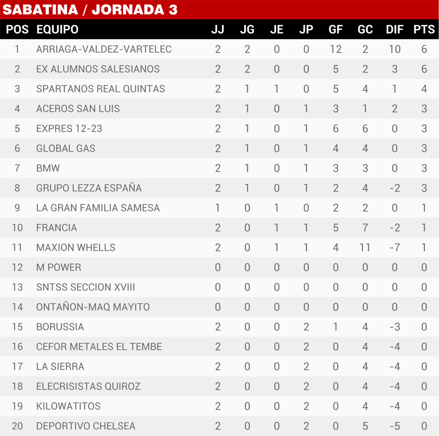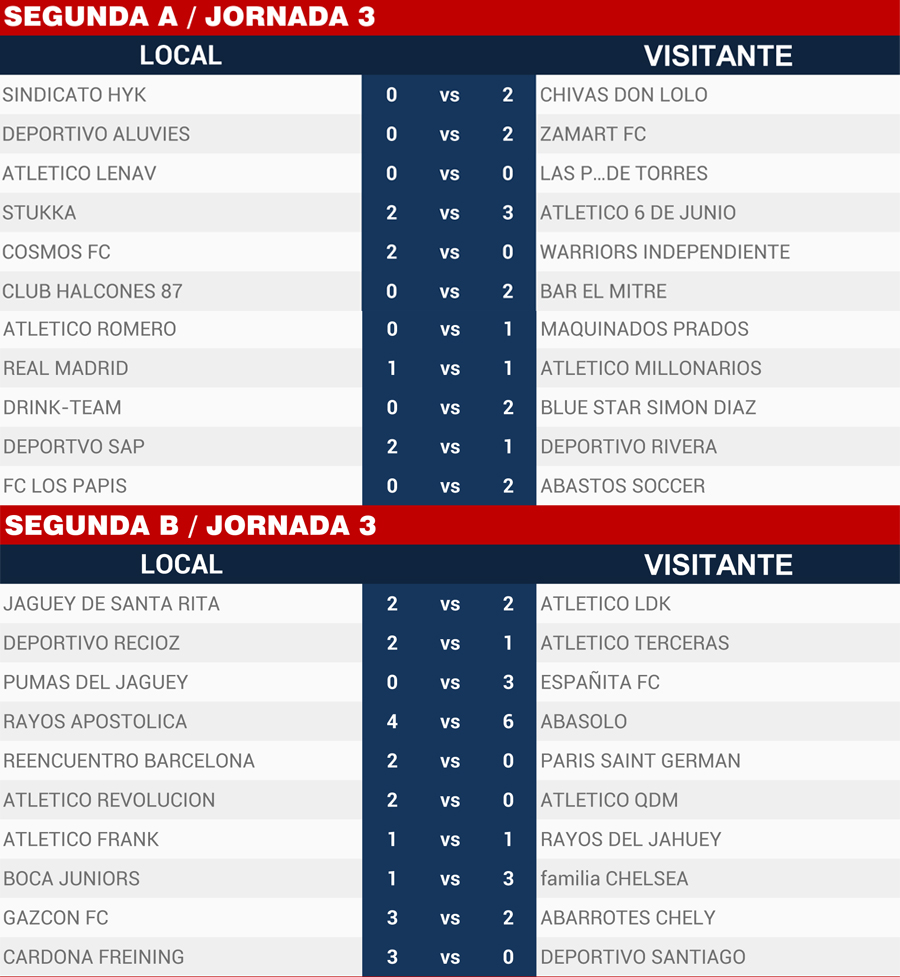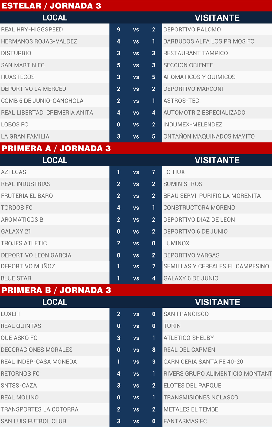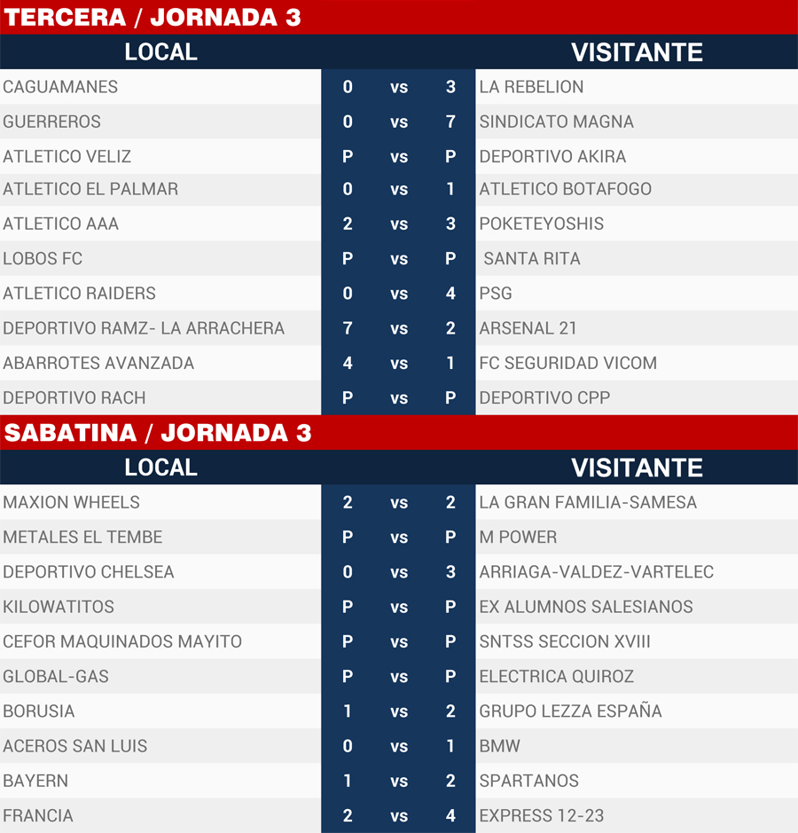 | Resultados Jornada 3, Super Liga Zona Industrial |