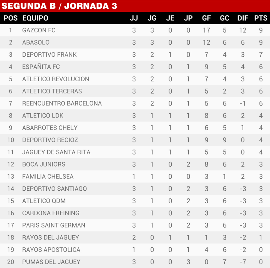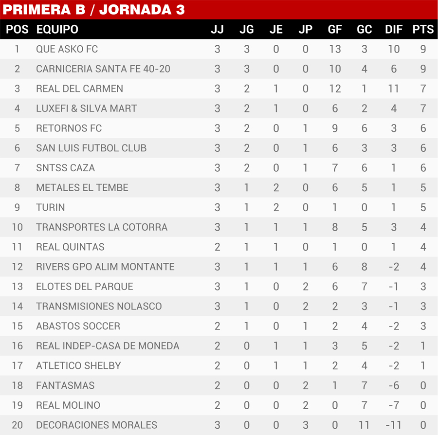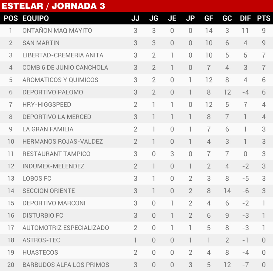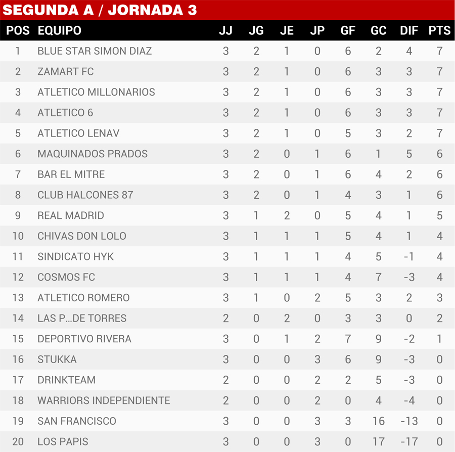 | Resultados Jornada 3, Super Liga Zona Industrial |