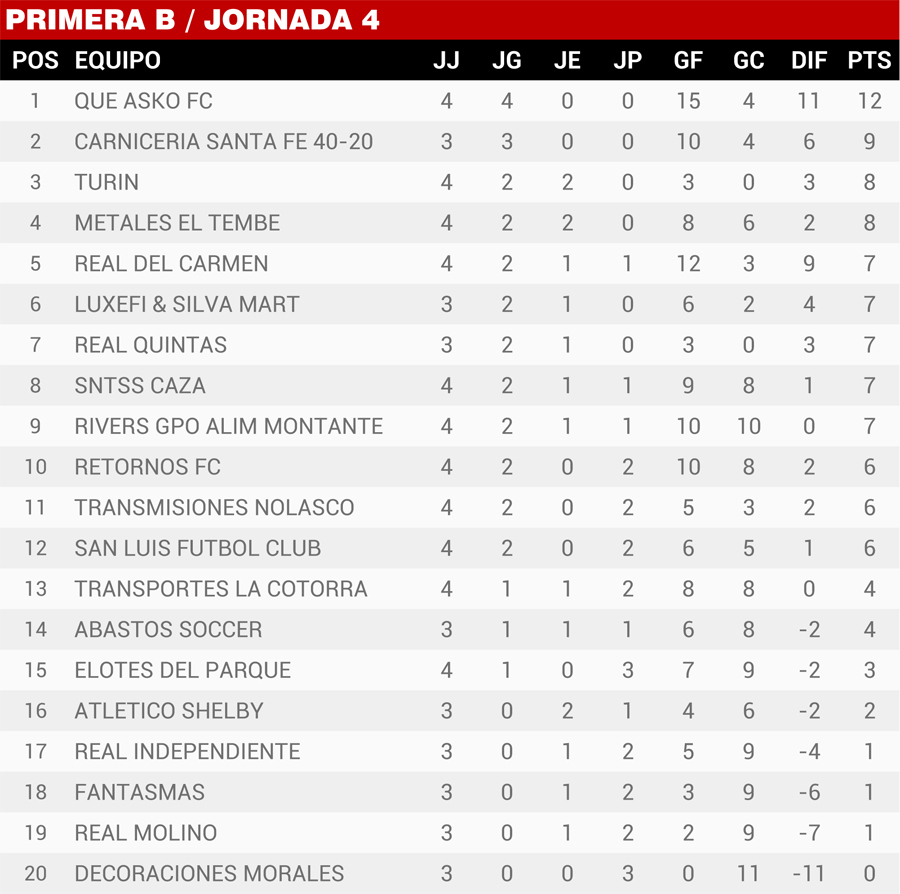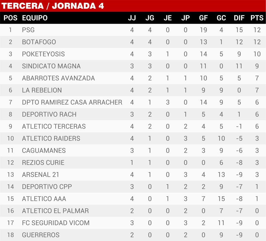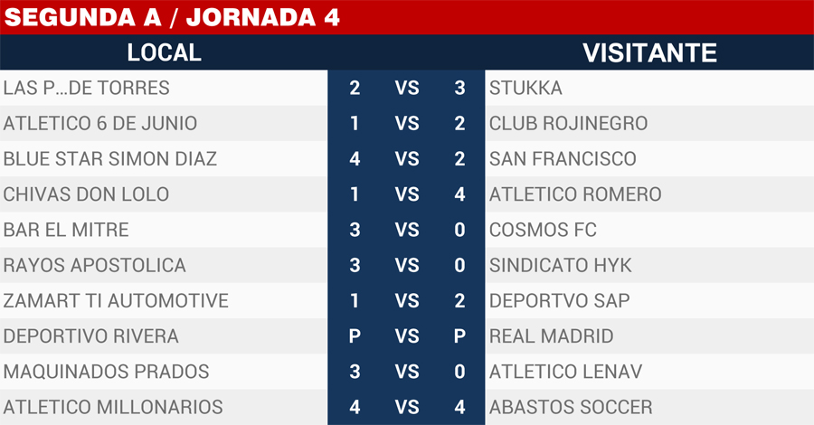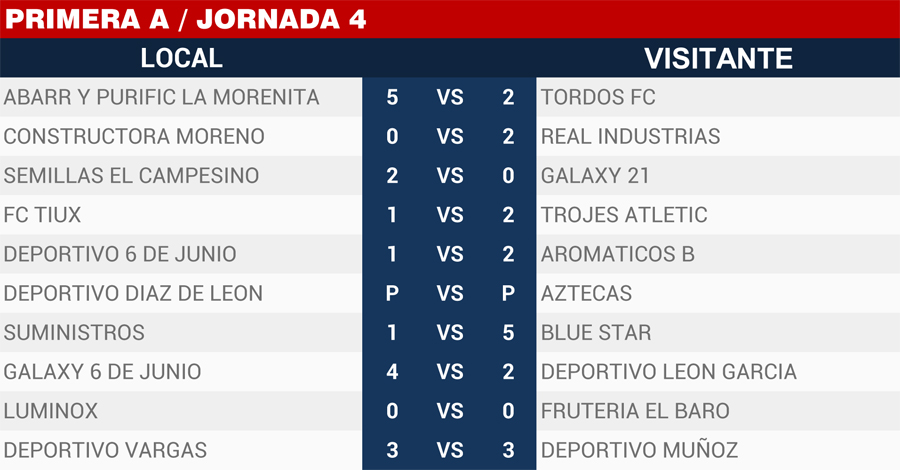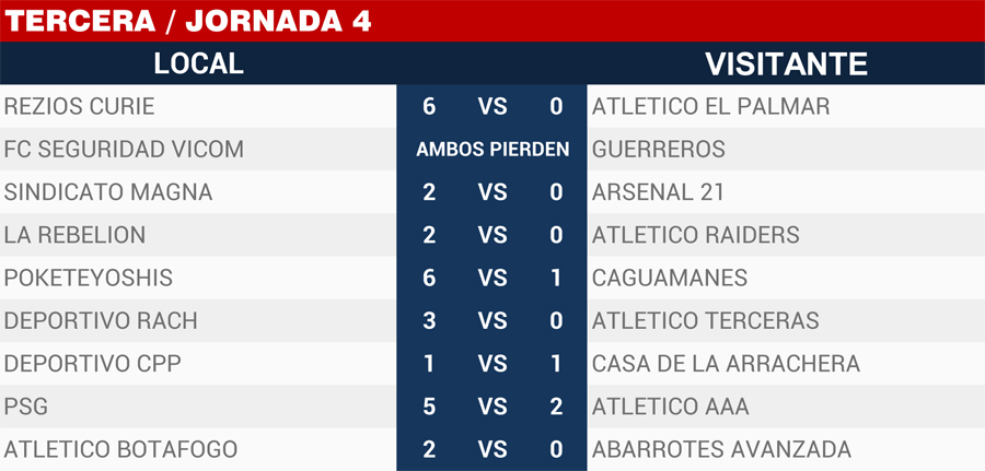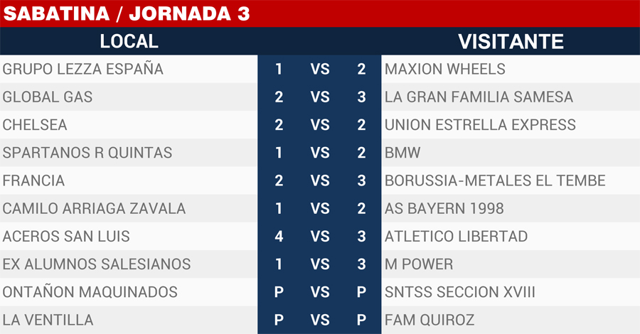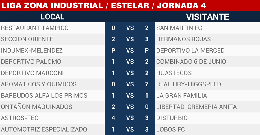 | Resultados Jornada 3, Super Liga Zona Industrial |